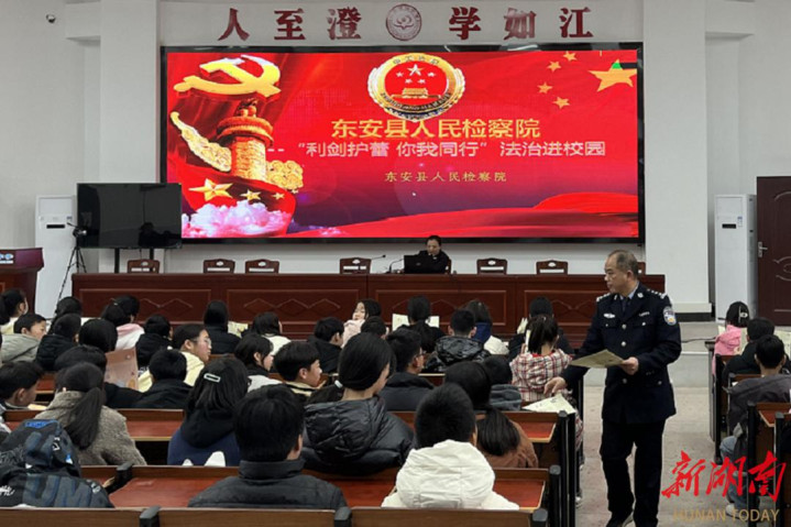 新湖南客户端2月28日讯(通讯员方勇周秋香陈玲平)为进一步深化未成年人保护工作,增强青少年安全防范意识和法治观念,营造健康、安全的校园环境,2月26日,东安县澄江中学联合县人民检察院开展“检爱同行·护航青春”法治进校园活动。